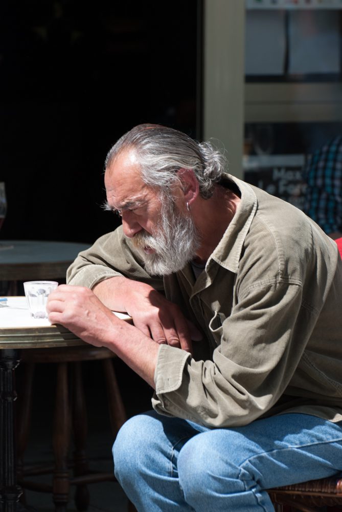 En revanche, dans un autre contexte, j’ai photographié une personne accoudée sur une table de bar, qui n’avait pas l’air « dans tous ses états ». Pourquoi ? Parce que j’ai aussitôt pensé au tableau du Docteur Gachet peint par Van Gogh !
